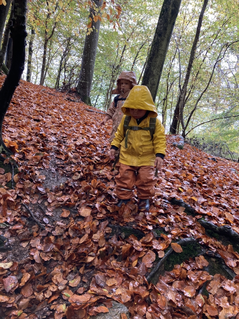 Omdrejningspunktet i vores aktiviteter er naturen, og derudover prioriterer vi sang og historier. Når vi er i skoven fortæller børn og voksne sammen historier og lader fantasien ændre en lille skovtur til en farlig tigerjagt. Vi synger både på turene og hjemme på legepladsen.